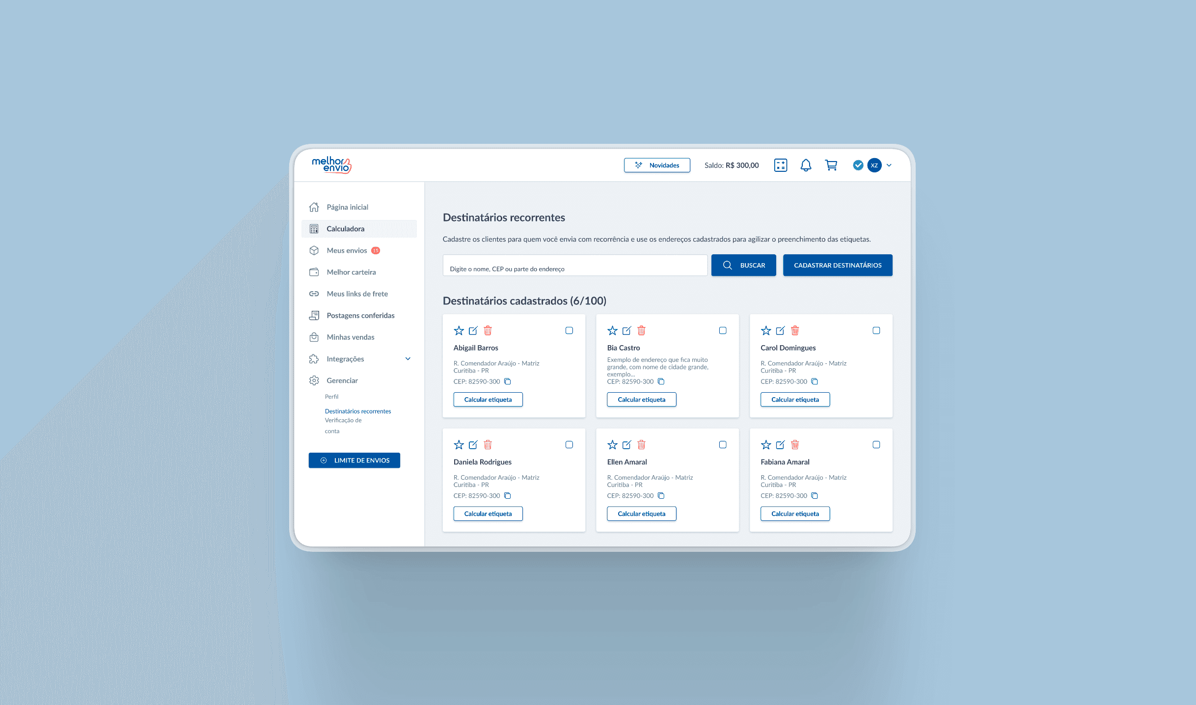 Fluxo para cadastro de destinatários recorrentes