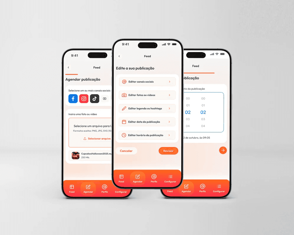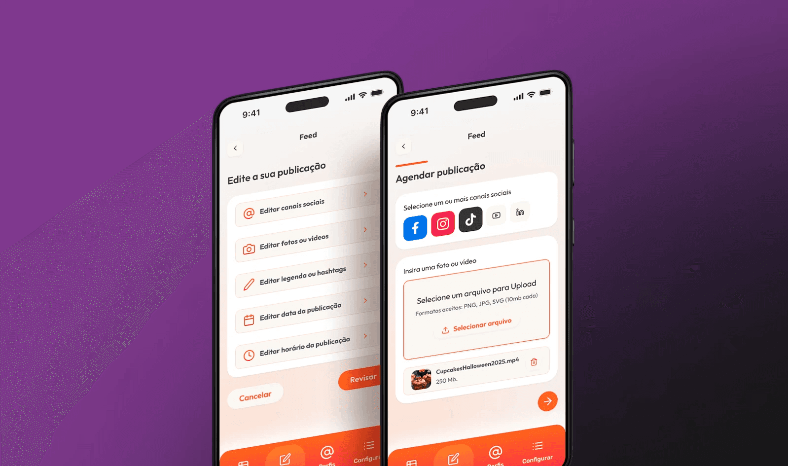 Melhorias para os fluxos de conexão de perfis sociais, gestão de concorrentes,segmentos e agendamento de publicações. O projeto foi voltado para a experiência mobile, trazendo melhorias de usabilidade para a plataforma.