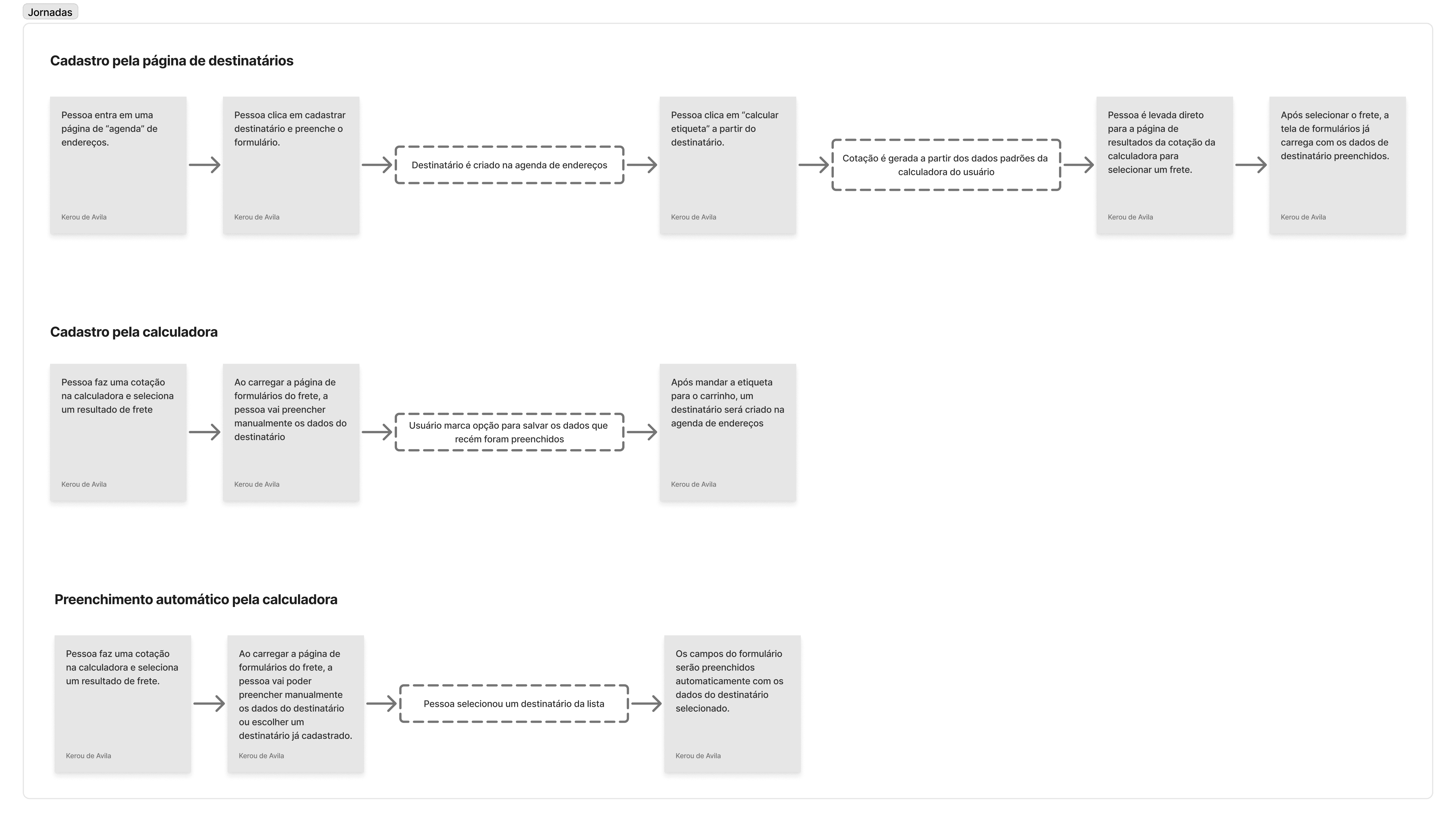 Comecei primeiro montando um mapa de jornada para visualizar a funcionalidade como um todo e em quais páginas da plataforma ela seria apresentada.