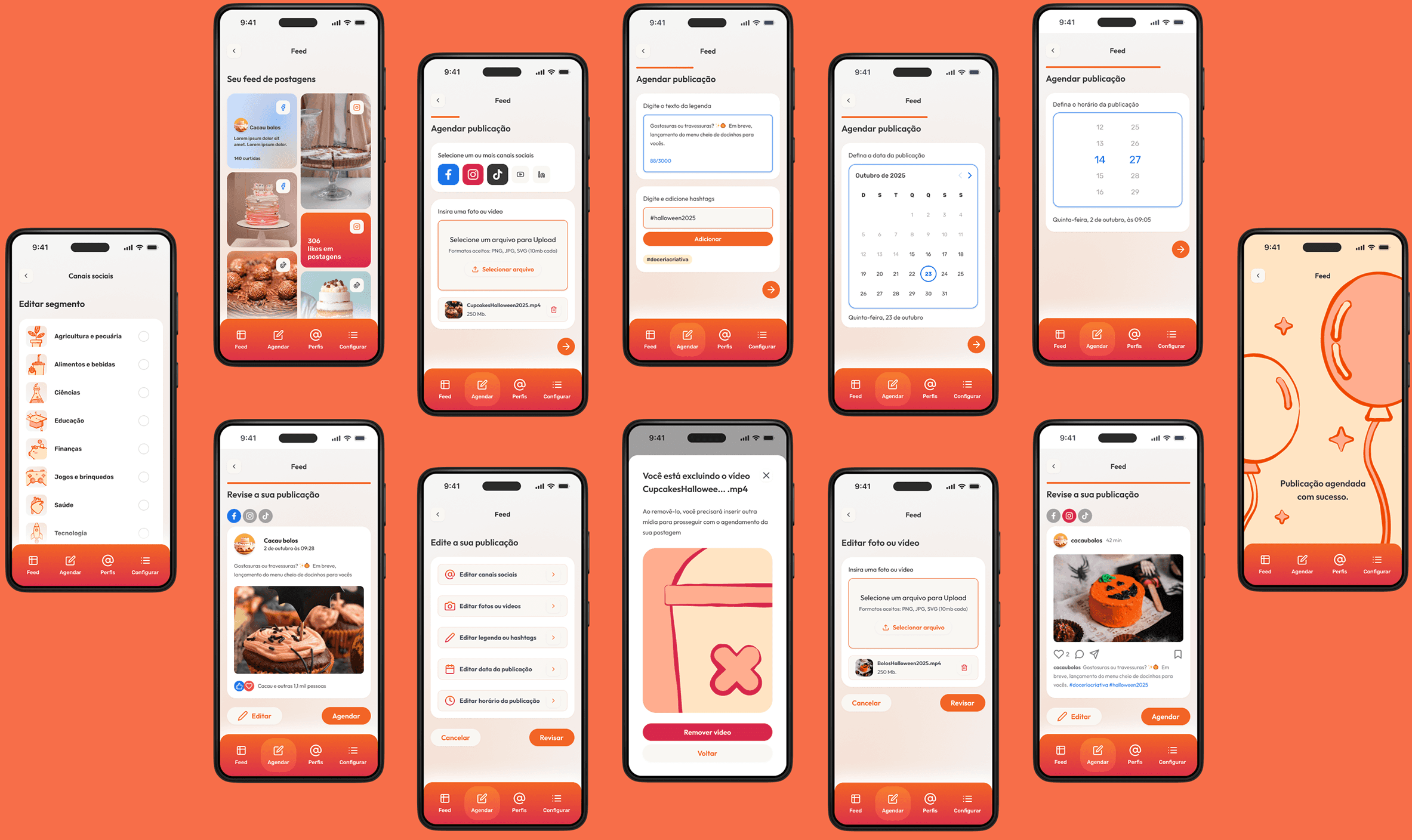O projeto possui redesign de experiência e interface para os fluxos de conexão de canais sociais, segmento, adição de concorrentes e agendamento de postagens. Para a concepção dos protótipos, contruí um style guide com componentes navegáveis no Figma, tokens de cores, tipografia e iconografia.